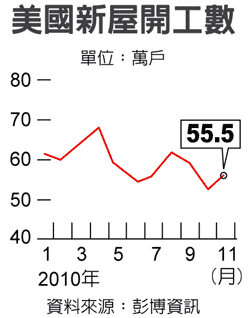 同天,美國商務部說,11月新屋開工數換算為年率為55.5萬戶,比10月的53.4萬戶增加3.9%。不過,受集合式住宅與公寓建案減少影響,11月核發的建築許可執照下降,意味著未來新屋開工數將下滑。