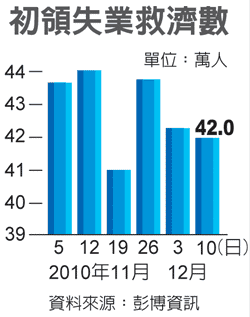 至4日止的ㄧ周內,領失業救濟的總人數增加2.2萬人至414 萬人,高於經濟學家平均預期的412萬人。而已用盡州政府提供的失業救濟金、改申領聯邦政府提供的緊急延長失業救濟的人數也增加32.45萬人,成為483萬人。
